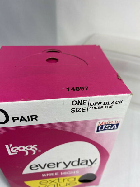 14897 L’eggs 10 Pair Knee Highs Pantyhose Everyday Off Black Sheer Toe One Sizes