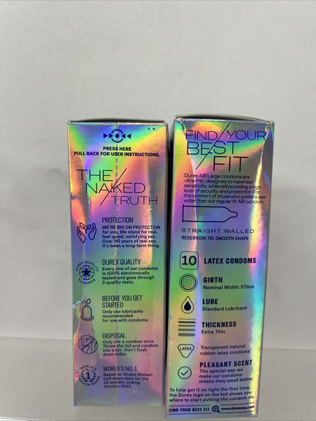 Durex Air Extra Thin Large Wide Fit Natural Rubber Latex 10 Condoms 10/26