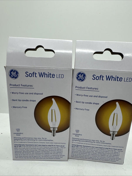 (2) GE 60w/5.5w Dimmable Soft White LED Clear Bent Tip Decorative 2Bulbs