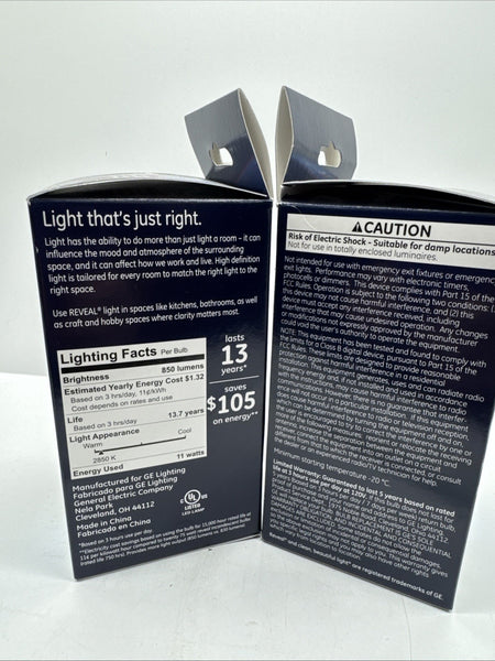 (2) GE Reveal LED 75w/ 11w Watts A21 Base Bulb 850 Lumens Pure Clean Light