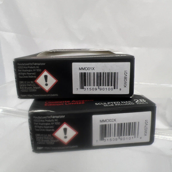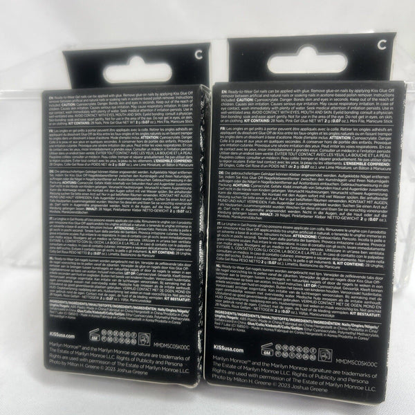 (2) KISS Marilyn Monroe NAILS GLUE ON Medium Black|Red French 90101 White|Gold