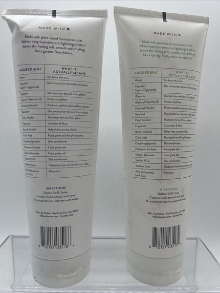 (2) Native Body Lotion Cucumber + Mint lavender Rose Silicone-Free Gift Set 12oz