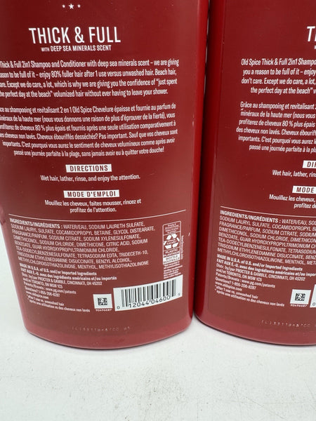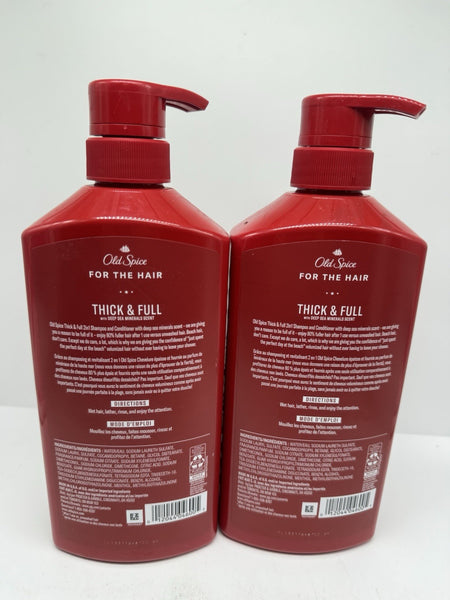 (2) Old Spice Mens 2 in 1 Shampoo & Conditioner All Hair Types Thick & Full Pump
