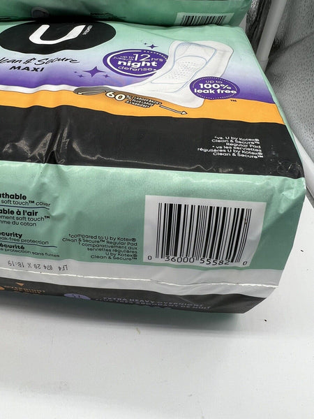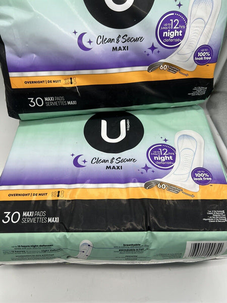 (2) U BRAND VALUE SIZE U by Kotex Clean & Secure overnight maxi pads 30 Ct