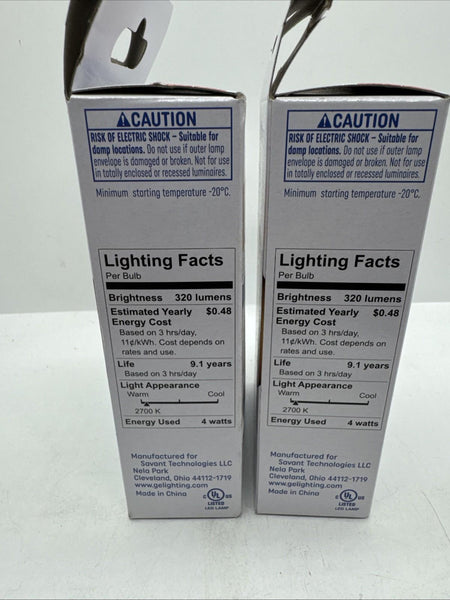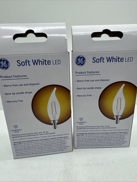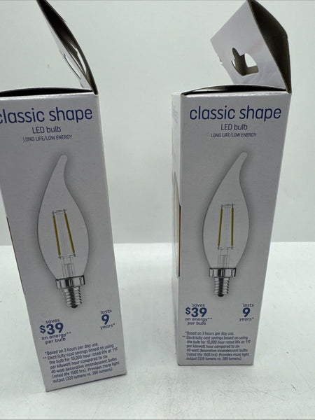 (2a) GE 40w/4w Soft White LED CAM Decorative Clear Finish Light 2 Bulbs Per Box