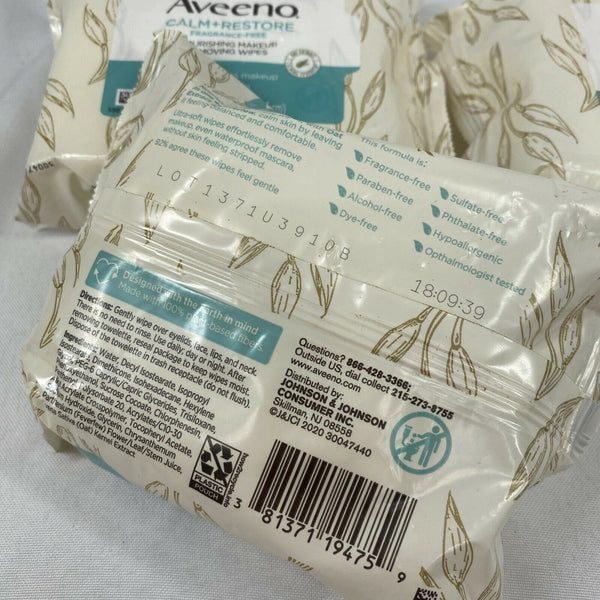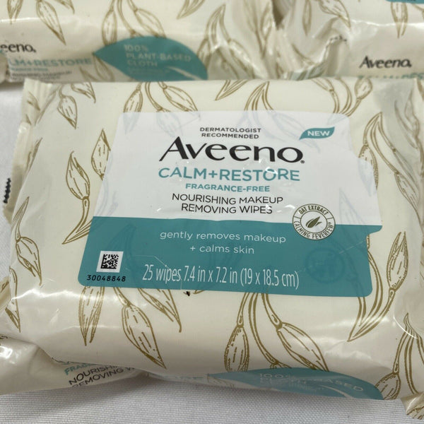 (3) Aveeno Calm Restore Wipes Nourishing Makeup Removing Towelettes Face 25ct