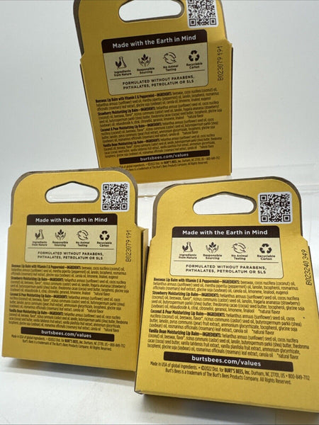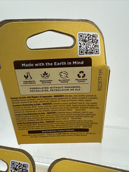 (3) Burt's Bees Beeswax Lip Balm coconut Pear Strawberry Vanilla Bean 4pk12Total