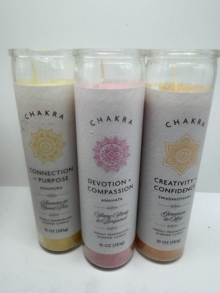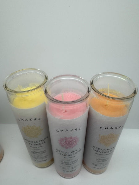 (3) Chakra Pillar Candles Creativity Confidence Compassion Devotion Connection