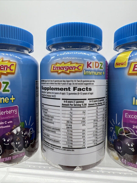 (3) Emergen-C Kidz Immune+ Gummy Excellent Elderberry, 44 CT10/24