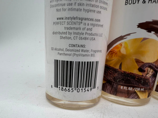 (3) Perfect Scents Tahitian Vanilla Light Refreshing Body & Hair Mists 8 Ozs