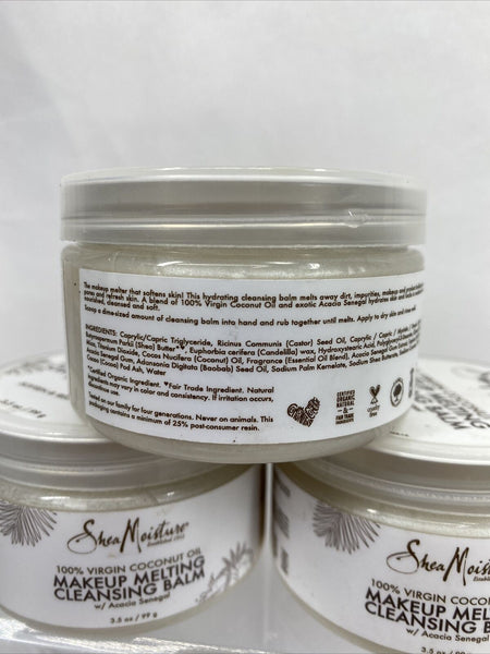 (3) Shea Moisture 100% Virgin Coconut Makeup Melting Cleansing Balm Remover 3.5z
