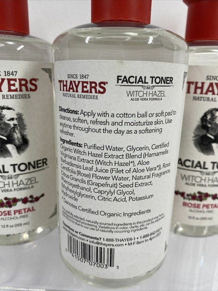 (3) Thayers Alcohol-free Facial Toner Rose Petal Witch Hazel Aloe Vera 12oz