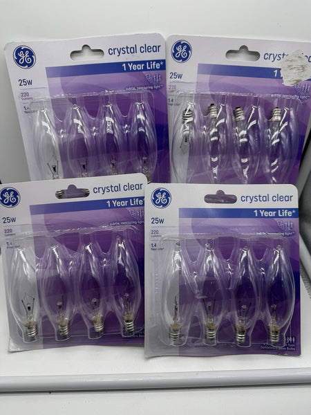 (4) GE Candelabra 16 Bulbs Crystal Clear CA 25w 220 Lumen 4 PerPack COMBINESHIP