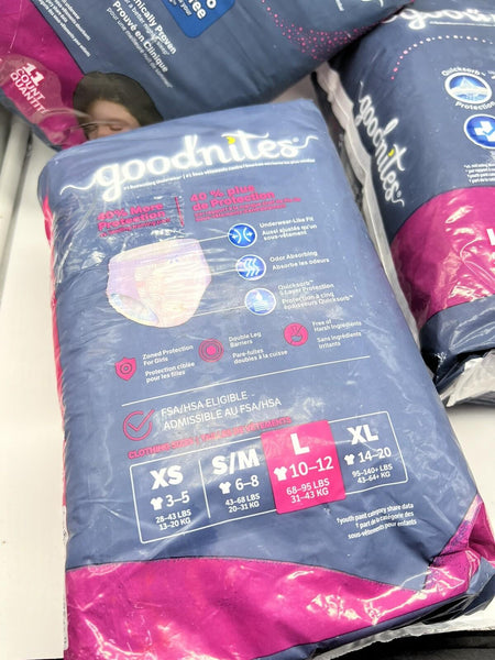 (4) Goodnites Youth Absorbent Underwear Fits SZ 10-12 Large 68 to 95 lbs. 11 Ct