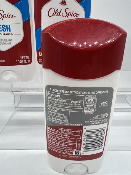 (4) Old Spice Anti-Perspirant Deodorant High Endurance Solid Fresh 3oz Large