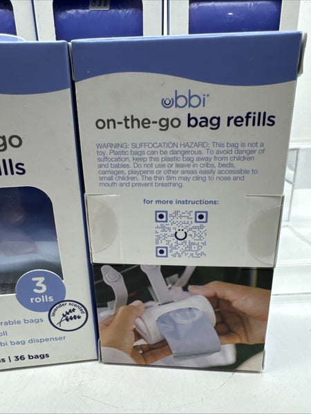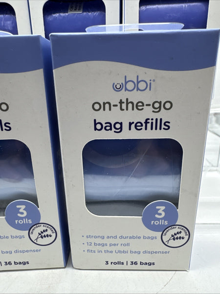 (5) Ubbi On The Go (REFILLS) Lavender Disposable Diaper Bags, 36 Ct Each 180ttl