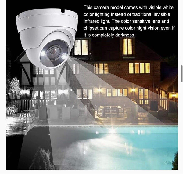 See photo for details 5MP Dome TVI CCTV Security Camera with Visible White LED Lights, 24/7 Full Color 65ft Night Vision, 2.8mm 100° Wide Viewing Angle, Outdoor, Full Metal,