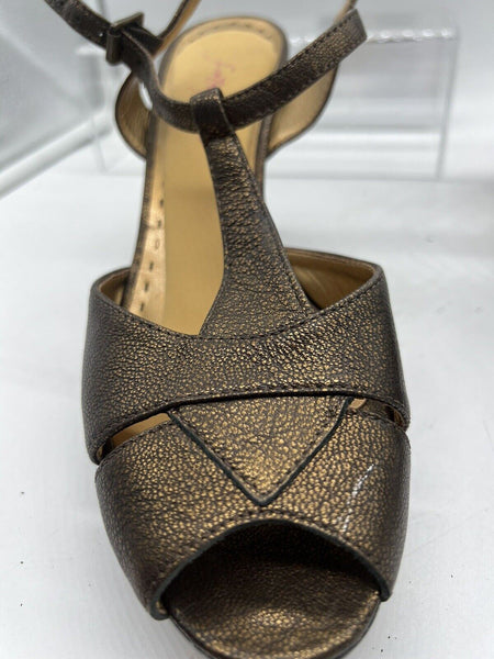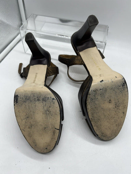 9 M Gianni Bini Gold Metallic Strap Sandal High Heel Open Toe Platform Sling