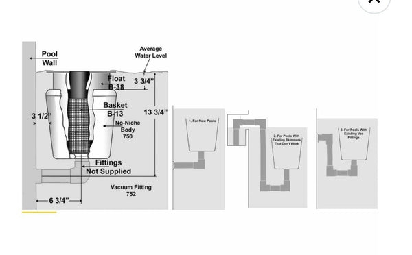 Aladdin No Niche skimmer Koi Pond Retrofit Large Basket Floating Weir 2" Pipe