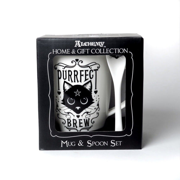 Alchemy Gothic Cat Feline ALMUG20 Purrfect Brew Cup & Spoon Coffee Mug Tea