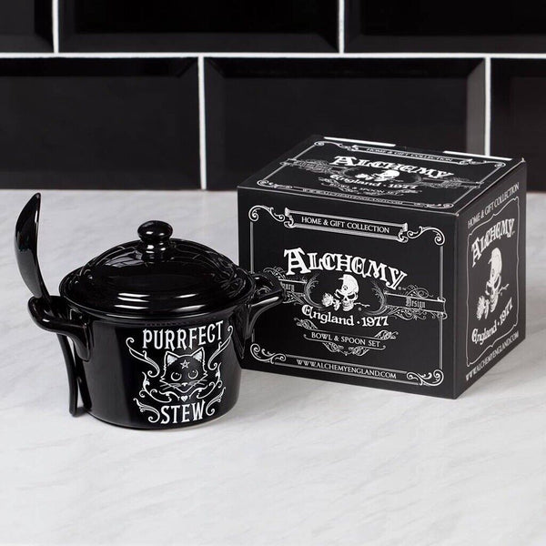 Alchemy Gothic Cat MRB1 Purrfect Stew Bowl Lid & Spoon China Oven Microwave