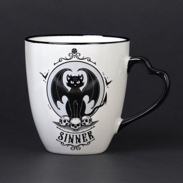 Alchemy Gothic CM4 Saint & Sinner Mug Set White & Black Cat Skull Coffee Tea