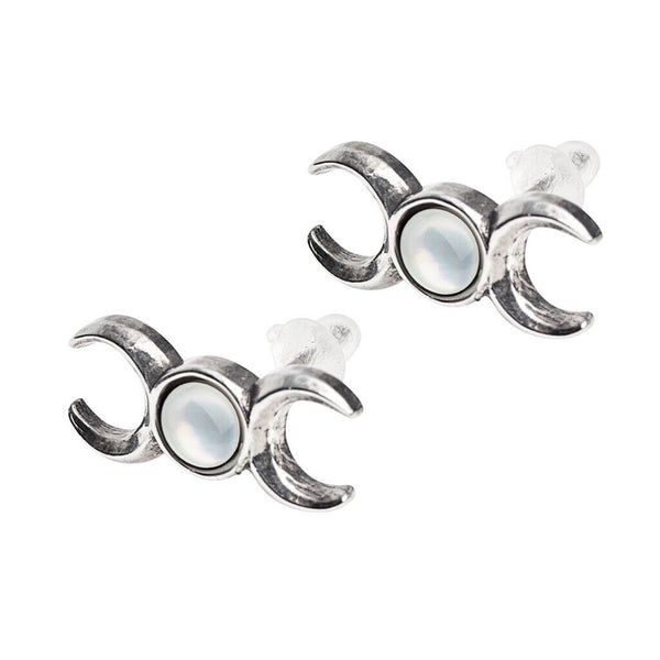 Alchemy Gothic E401 - Triple Goddess Studs Earrings Mother Of Pearl Moon Wicca