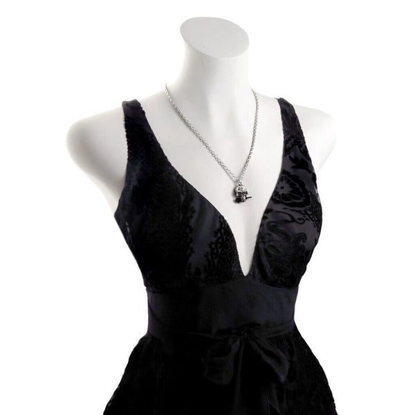 Alchemy Gothic P26 The Alchemist Pendant Necklace Skull Black Rose in Mouth