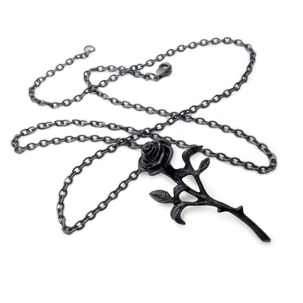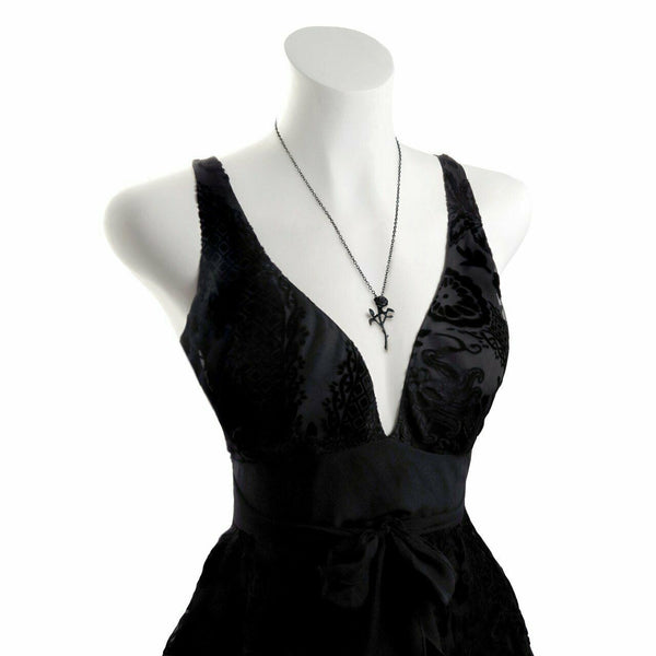 Alchemy Gothic P695 The Romance Black Rose Pendant Necklace