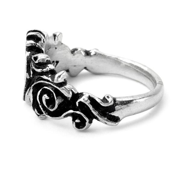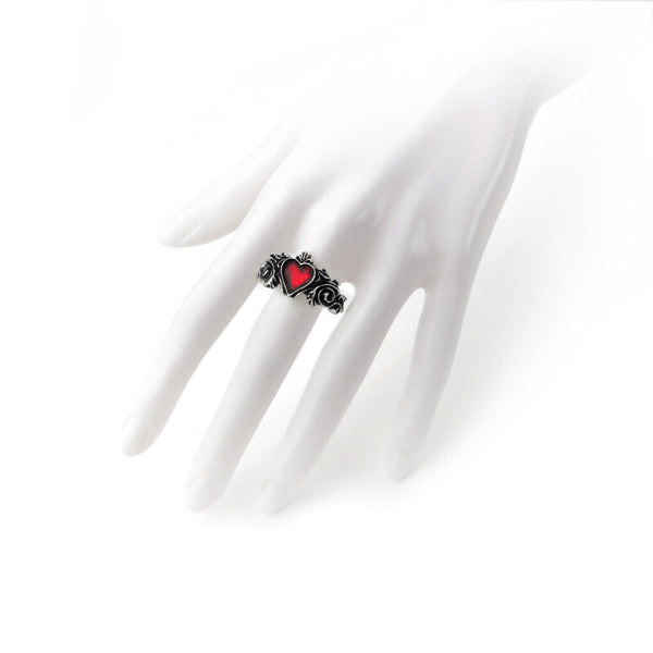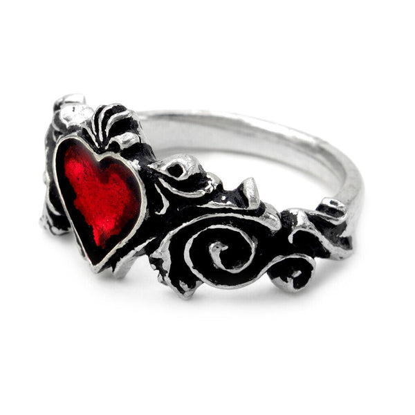Alchemy Gothic R134 Betrothal Ring red heart floral scroll