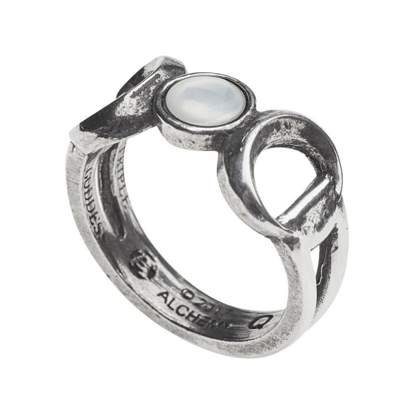 Alchemy Gothic R219 Triple Goddess Ring England Moon Wiccan Pearl Crystal