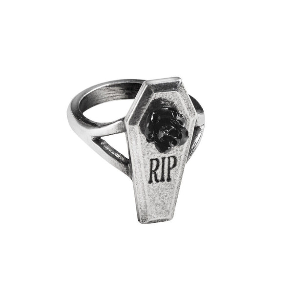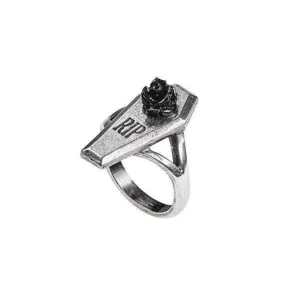 Alchemy Gothic R235 RIP Rose Ring Coffin Black Rose England Rest in Peace