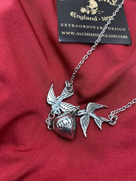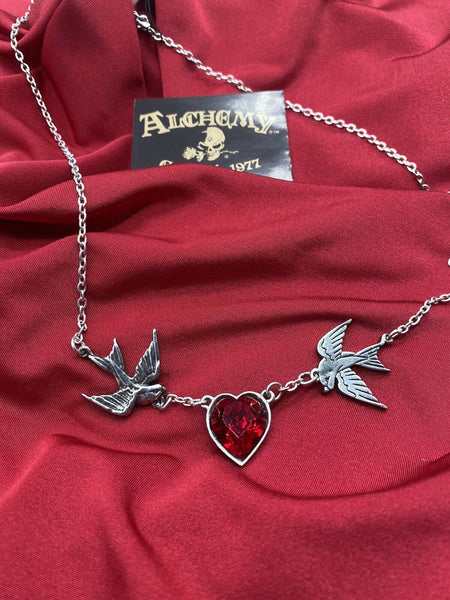 Alchemy Gothic ULFP1 Swallow Heart Necklace Pendant Red Crystal IN HAND