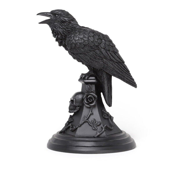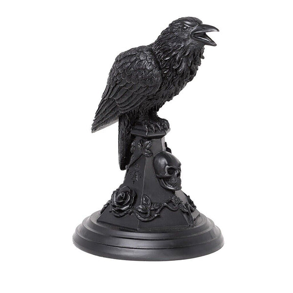A raven, rose and skull design candle stick hand finished in the finest quality black resin.