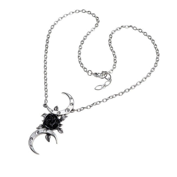 Alchemy Of England P870 - The Black Goddess Necklace Gothic Pendant rose moon