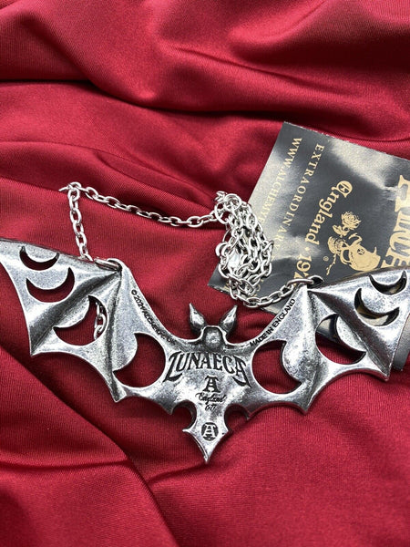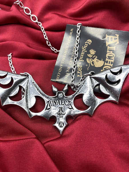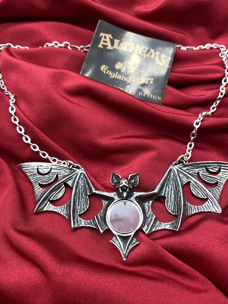 Alchemy Of England P922 Lunaeca Necklace Gothic Pendant Bat Moon Mirror IN HAND
