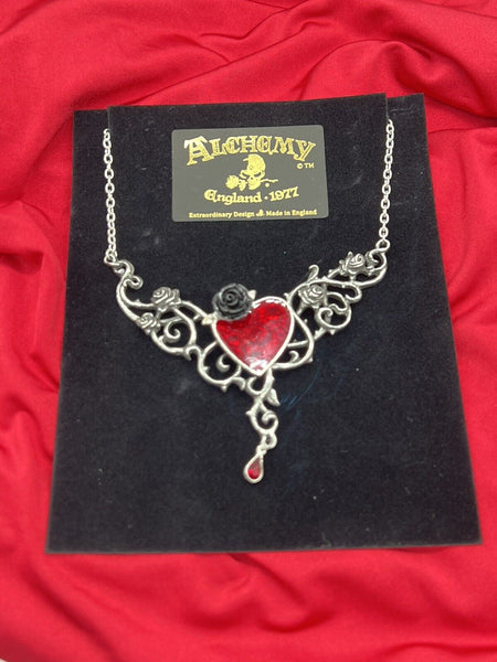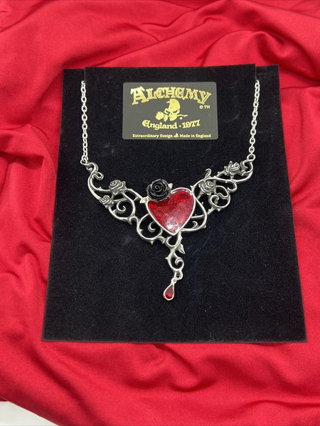 Alchemy P721 The Blood Rose Heart Pendant Necklace Gothic Red IN HAND Valentine
