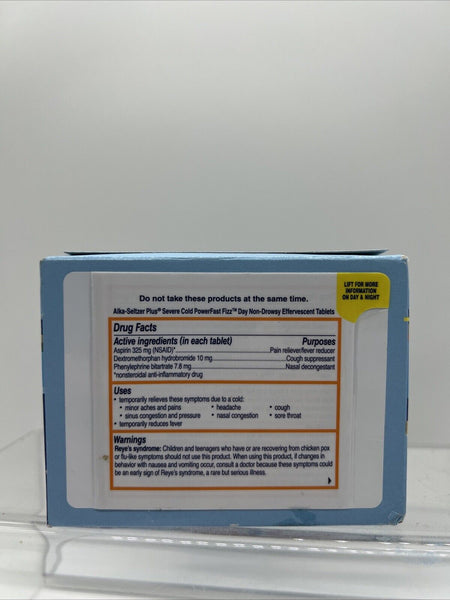 Alka-seltzer Plus PowerFast Fizz Severe Cold Day Night Lemon 24 Effervescent