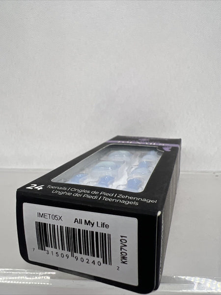 All My Life IMPRESS Premium PEDICURE TOENAILS Press On Geometric Ice Blue Glitte