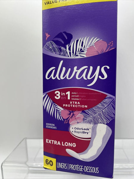 Always Anti-Bunch Xtra Protection Daily Liners, Extra Long, 60 Liners