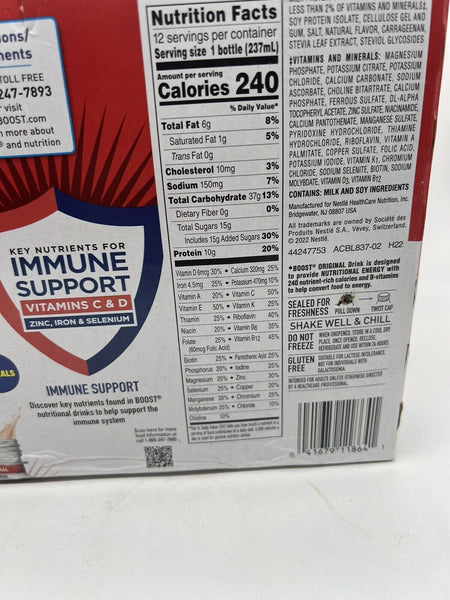BOOST Original Nutritional Drink Creamy Strawberry 12 pack 8oz 10g Protein