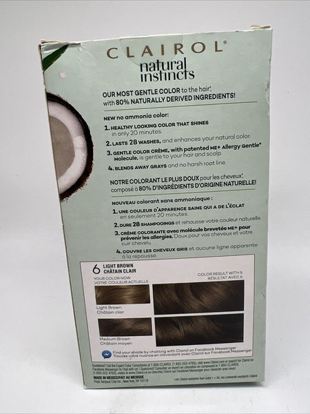 Clairol Natural Instincts 6 Light Brown Brown Semi-Permanent Hair Dye