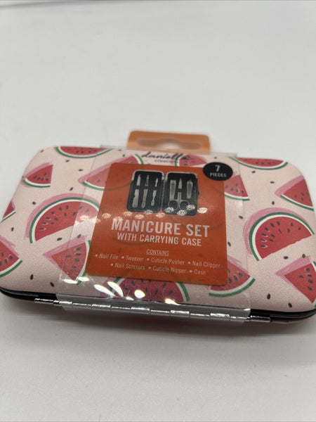 Danielle Creations Manicure Set 7pc Tweezer Scissors Carrying Case Watermelon