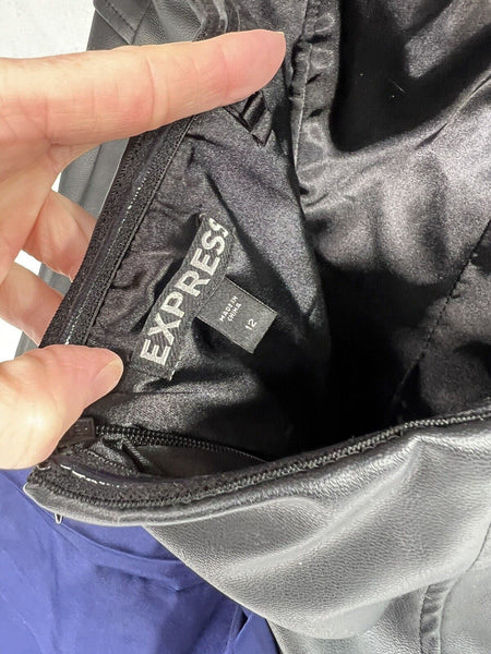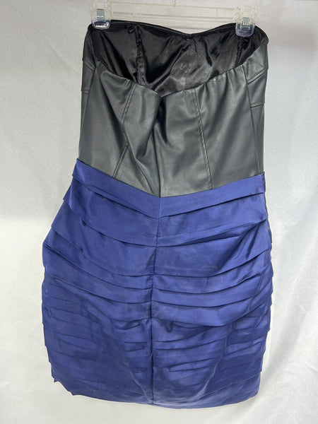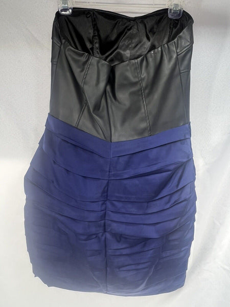 Express Sz 12 Blue & Black Mini Dress Club Evening Pleather Ruched Strapless