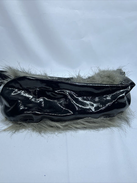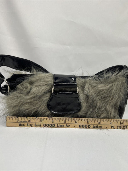 Furry Black Purse Clutch Bag Strap Small Zipper Faux Fur Bag