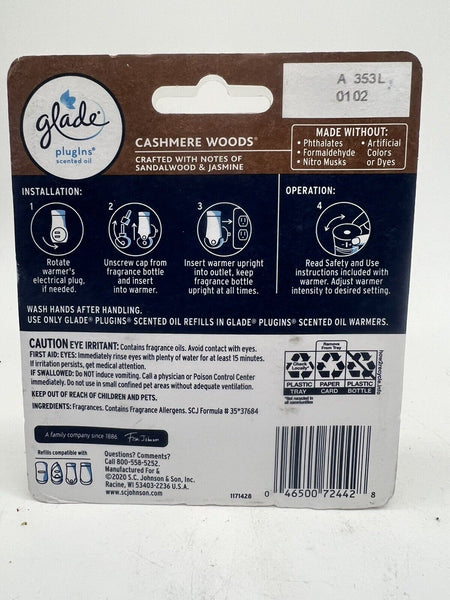 Glade Plugins Scented Oil Refills - Cashmere Woods - 2 Count Refills COMBINESHIP