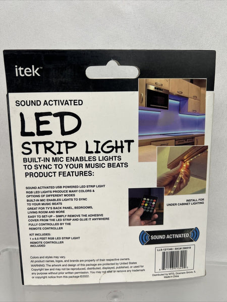 ITek LED Strip Light 6.5 Feet Remote Control Color Change Sound Activated Multi
