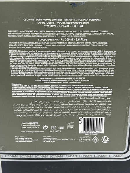 Lomani Gift Set 3.4 oz Eau De Toilette Spray 6.7oz Deodorant Spray Cologne Set