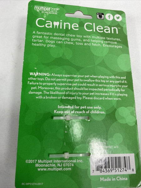 Multipet Canine Clean Rope 3 TPR Balls Spearmint Chew Dogs Toys Tartar Dental