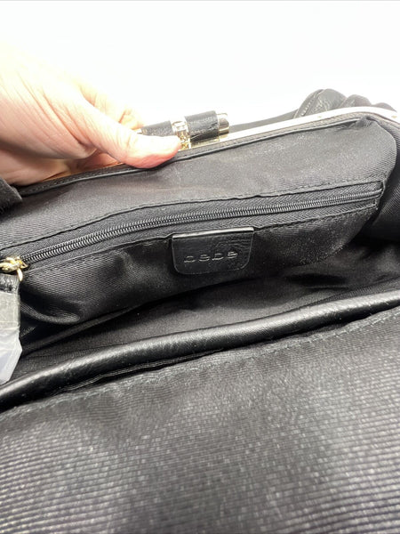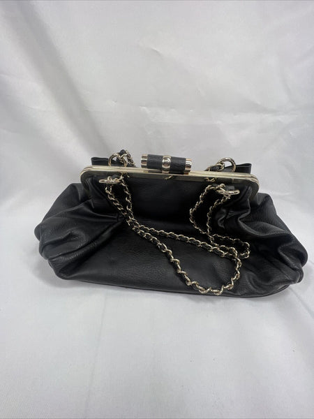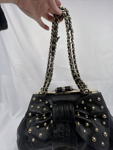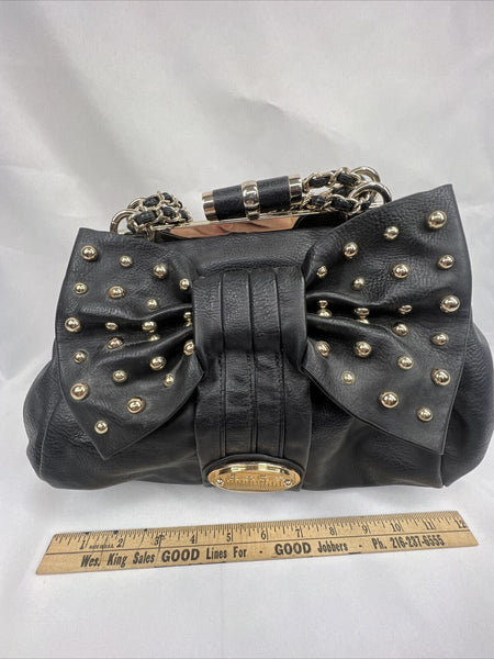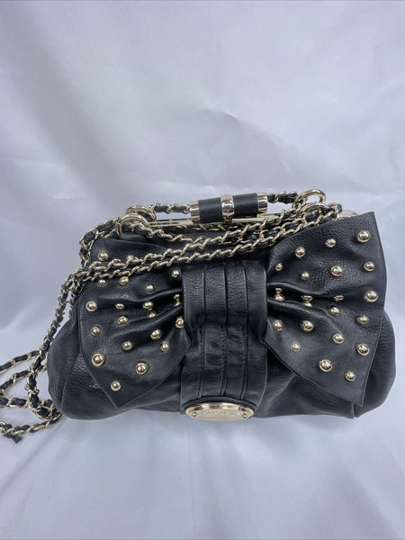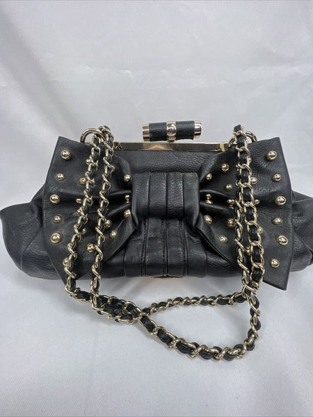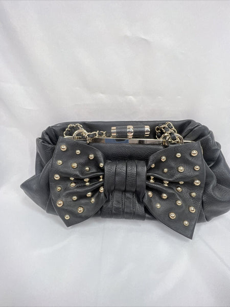 NEW bebe Black Bow Accent Purse Gold Stud Braided Chain Shoulder Bag Clutch Adj.